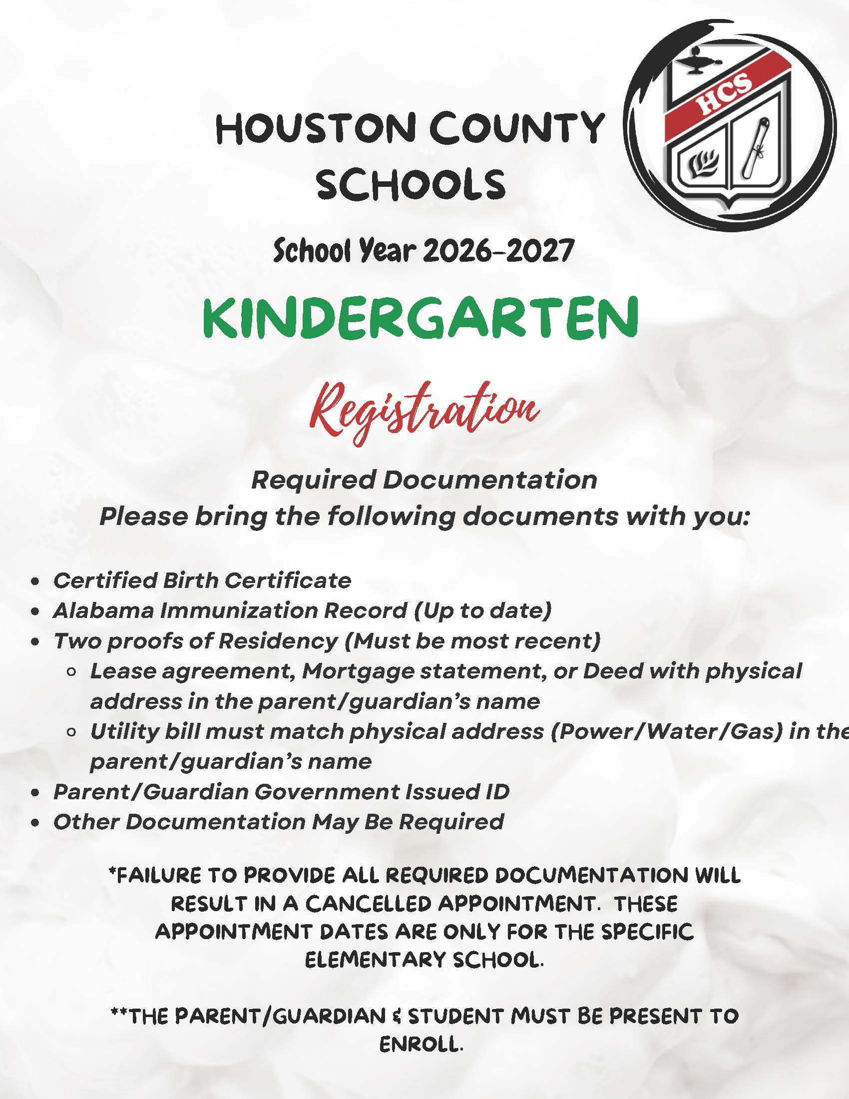 Enrollment Appointment Dates & Times:Please select your child's zoned school to schedule an enrollment registration time: Ashford Elementary School Cottonwood Elementary School Rehobeth Primary...